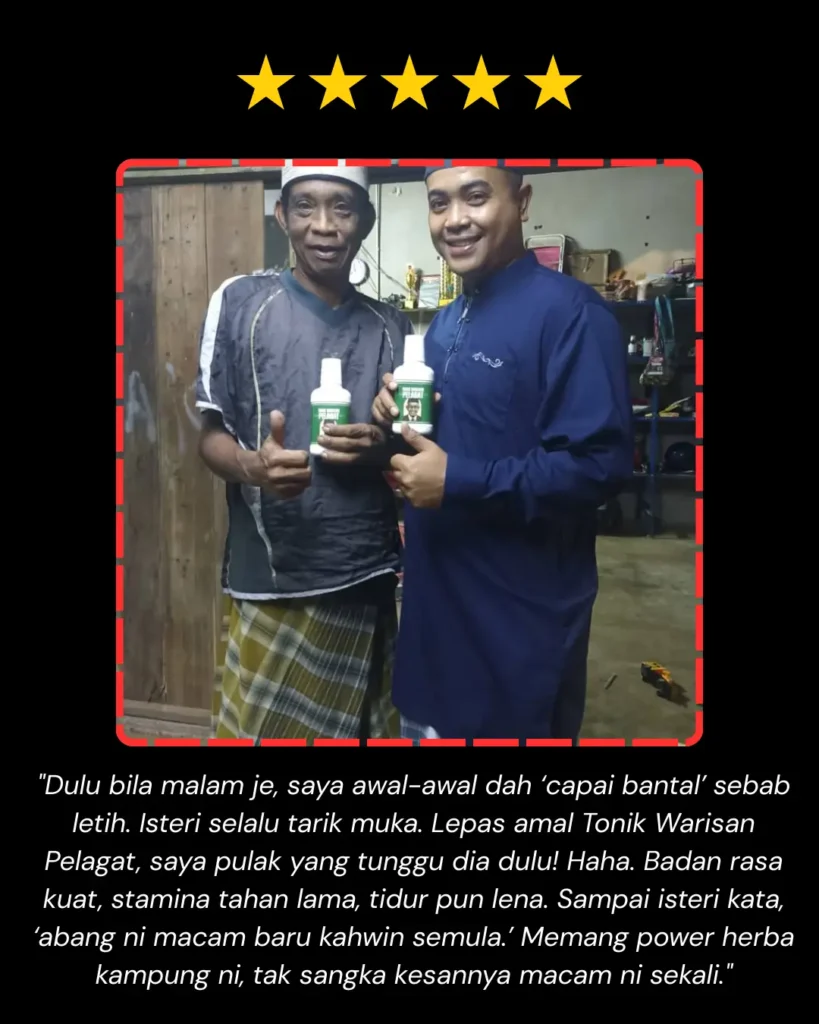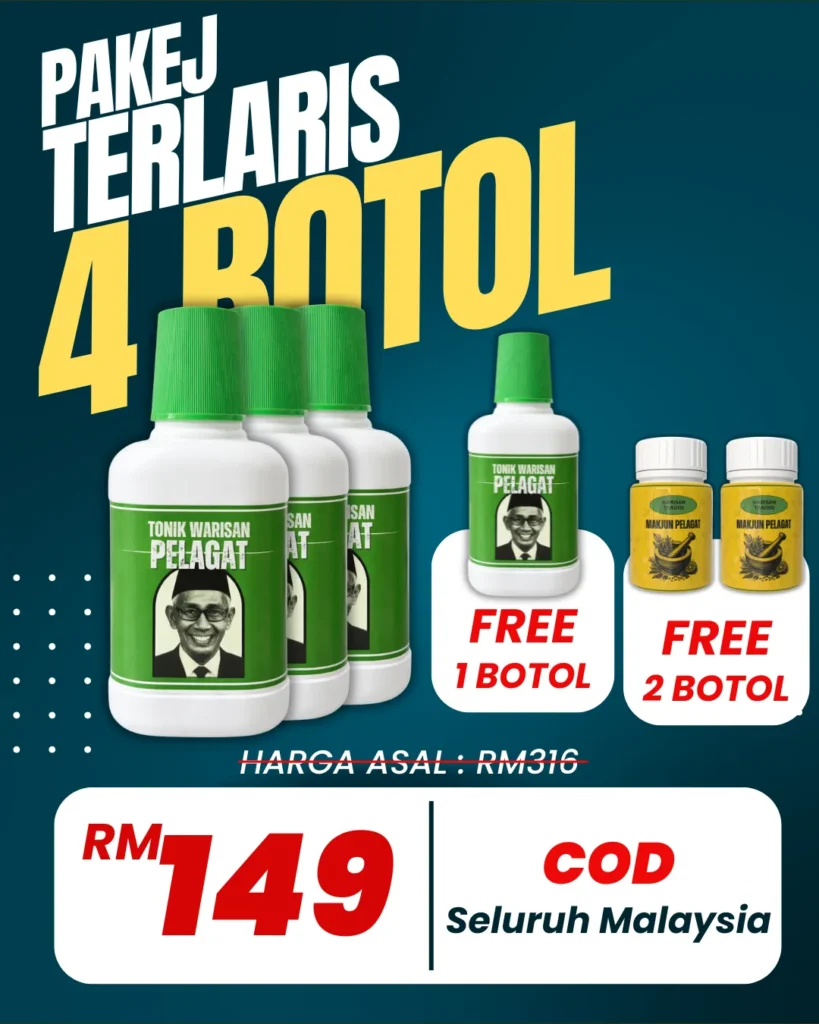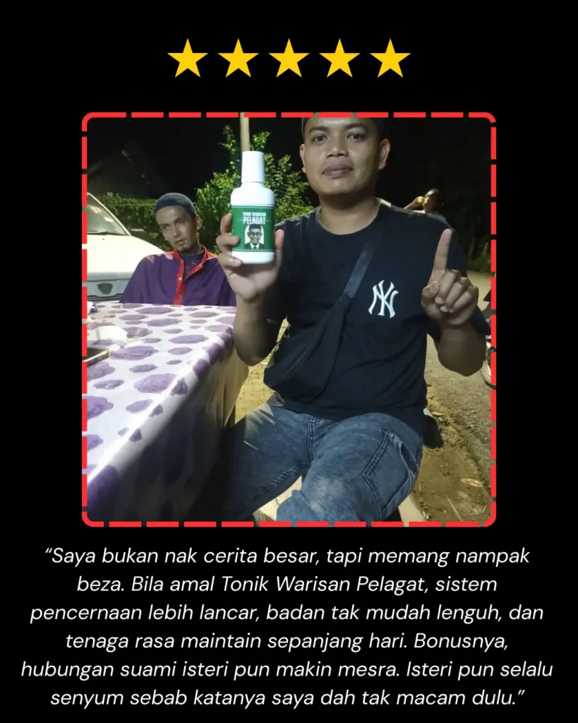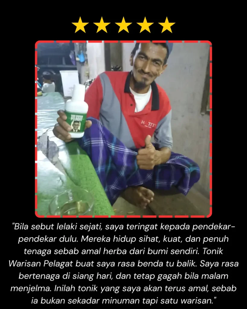 Jadi, bila semua bahan ni digabung dalam Tonik Warisan Pelagat, ia bukan sekadar minuman tenaga – tapi satu ramuan warisan kampung Kelantan yang penuh cerita dan fungsi untuk lelaki.