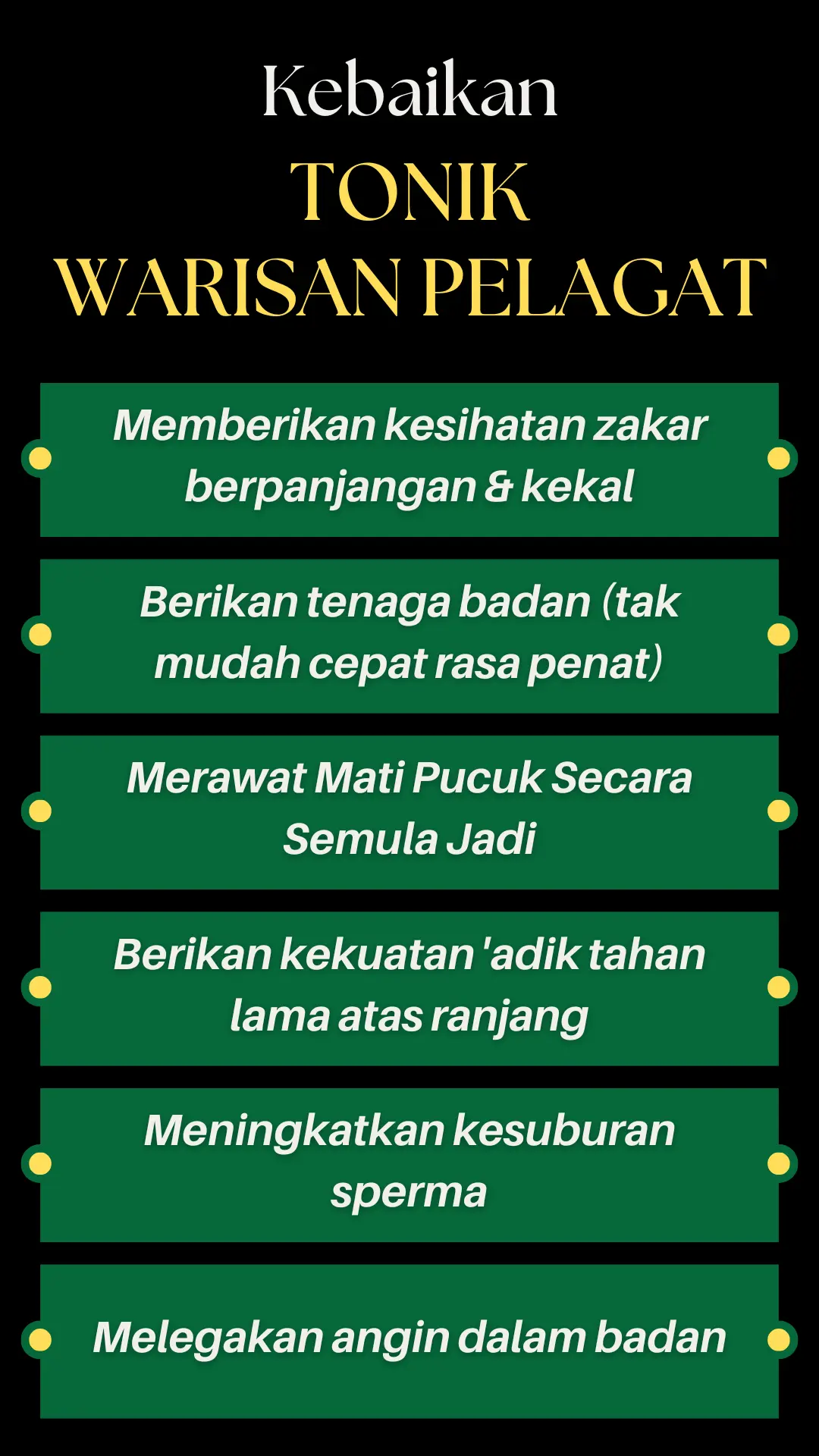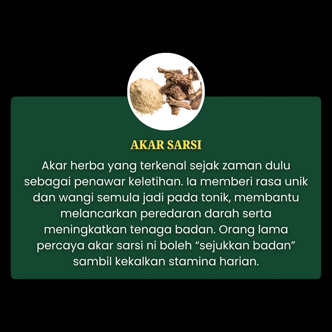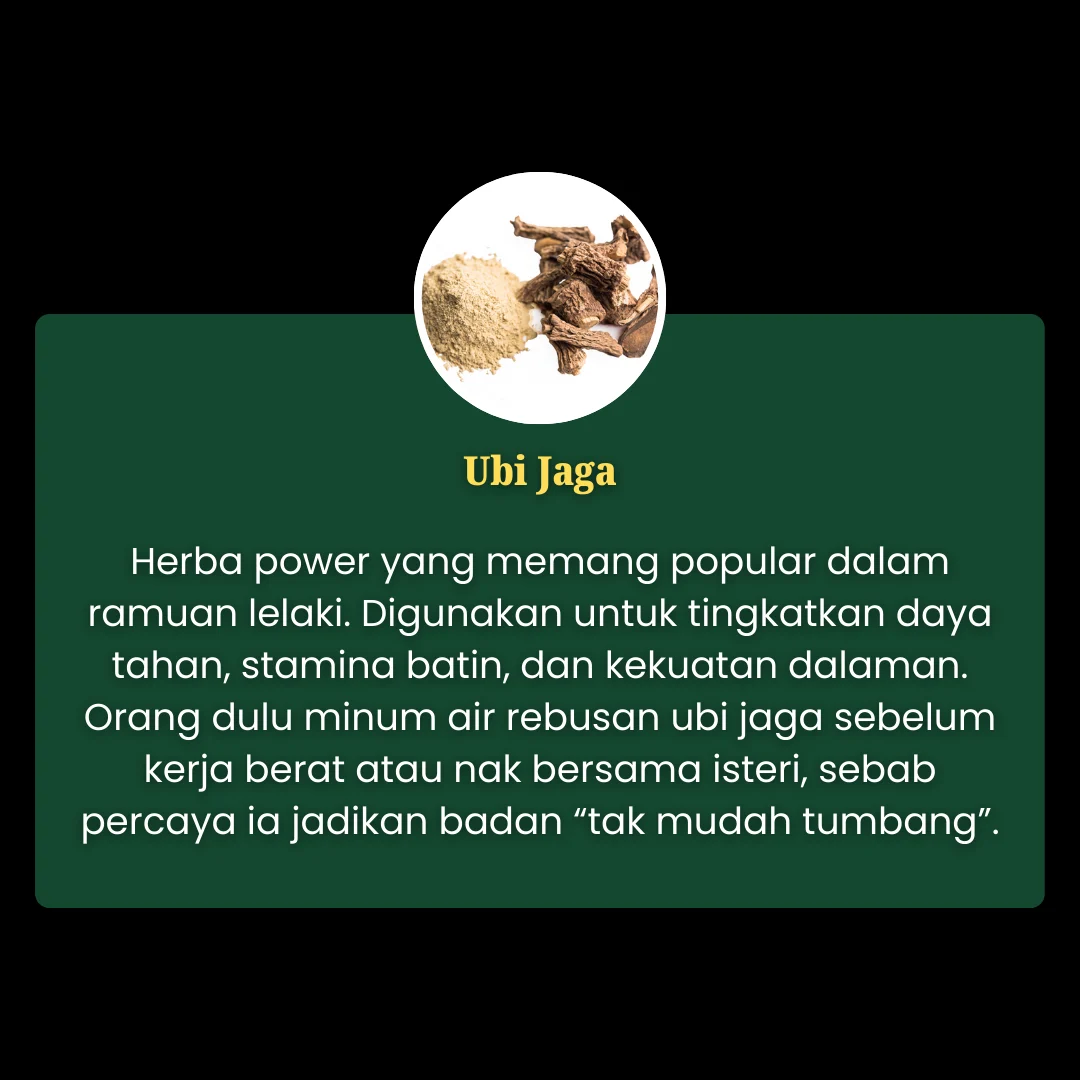 Jadi, bila semua bahan ni digabung dalam Tonik Warisan Pelagat, ia bukan sekadar minuman tenaga – tapi satu ramuan warisan kampung Kelantan yang penuh cerita dan fungsi untuk lelaki.